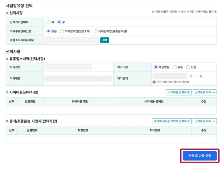 🔹 STEP 3. 업종 및 사업장 정보 입력