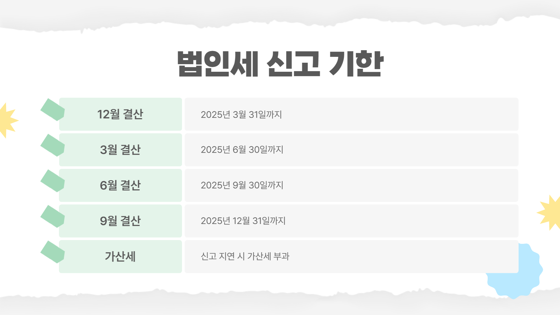 ✔ 2025년 법인세 신고 기한은 3월 31일까지!